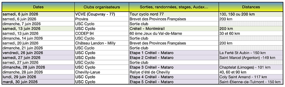 Parcours et distances variés (entre 70 et 100 km) en fonction du temps et des groupes de niveau. Un capitaine de route par groupe.